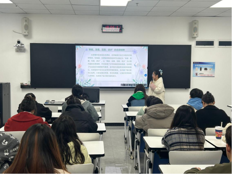 活动伊始,曾小于同学以通俗易懂的方式,向同学们阐述了国际志愿者日的意义和志愿者精神的核心价值——“奉献、友爱、互助、进步”。她引导同学们深入了解志愿服务的内涵,并强调了志愿服务在推动社会发展和经济建设中的重要作用。随后,曾小于分享了个人参与志愿服务的亲身经历,用生动的案例展示了志愿服务如何为社区带来温暖和改变。她的故事激发了同学们对志愿服务的兴趣,并在他们心中播下了志愿服务的种子。最后,曾小于向同学们介绍了参与志愿服务的多种途径,包括学校组织的活动、“三下乡”社会实践以及“返家乡”社会实践等。她鼓励同学们积极参与,让文明之花在校园内外处处绽放,让志愿服务精神成为新时代的风尚。