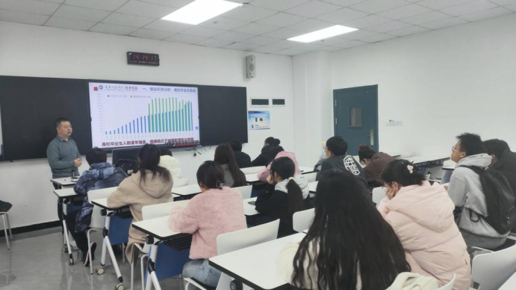 在就业形势的分析环节,滕老师巧妙地将经济趋势、技术发展动态与人才市场需求的最新变化相结合,为同学们深刻揭示了当前就业市场所面临的挑战与潜在机遇,帮助他们从宏观角度把握时代脉搏,理解外部环境对个人职业规划的影响。紧接着,滕老师细致入微地探讨了继续深造、直接就业及自主创业等多种毕业去向的利弊权衡,鼓励同学们基于个人兴趣、能力特长及长远发展目标,做出最适合自己的个性化选择,强调了职业规划中自我认知与定位的重要性。