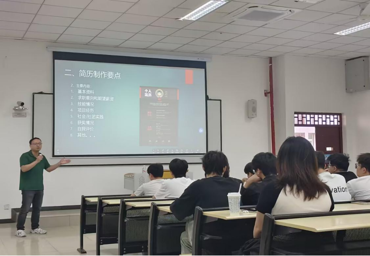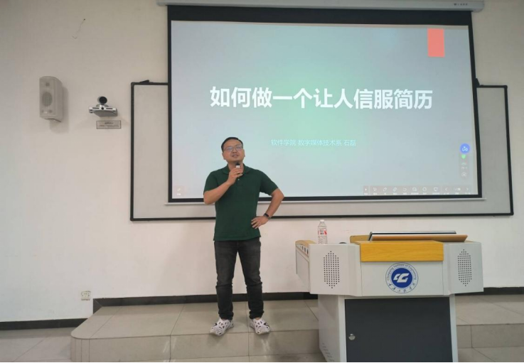 (文/图 软件学院 徐莉清)为助力软件学院22级数字媒体技术系学生精准把握求职核心,提升就业竞争力,软件学院星火燎原辅导员工作室于2025年4月15日晚在第六教学楼6202教室开展“巧构简历,智绽锋芒”简历制作专题讲座,特邀请数字媒体技术系主任石磊老师担任主讲嘉宾。本次活动紧密围绕数字媒体技术专业学生的求职需求,聚焦简历制作底层逻辑,通过系统性指导帮助学生深度挖掘个人优势,以精准化表达增强简历说服力,助力学生在求职市场中脱颖而出。