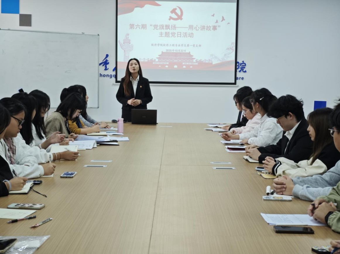 (文/图 软件学院 陈代玉)为增强党性教育,树立榜样力量,激发党员的爱国情怀与奋斗精神。软件学院软件工程专业学生第一党支部于2025年10月22日在7506会议室特举办第六期“党旗飘扬——用心讲故事”主题党日活动,在校师生党员(预备党员)、部分发展对象、部分入党积极分子参与。