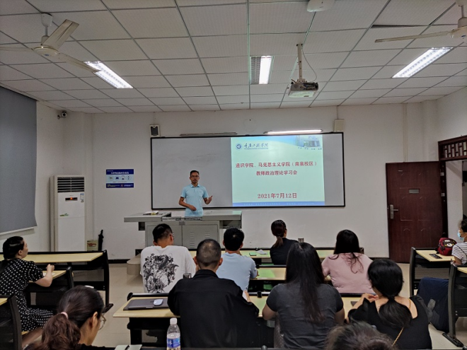 为进一步加强政治理论的学习教育,号召全体党员以昂扬姿态发奋努力,以优异成绩庆祝建党一百周年。7月12日,通识学院、马克思主义学院(南泉校区)教师在南泉校区6119教室进行政治理论学习,学习习近平总书记在庆祝中国共产党成立100周年大会上的重要讲话。理论学习由郑几纬副书记主持。