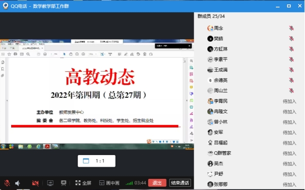 2022年12月7日下午16:00,数学教学部开展了线上学习第四期高教动态,活动由赵战兴部长主持,全体专职教师参加。