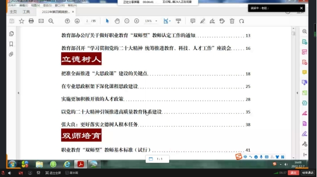 赵战兴老师组织大家学习了“重庆工程学院2022年第4期(总第27期)高教动态”,首先学习了“教育要闻”模块中的“以高等教育高质量发展全面服务支撑中国式现代化”、“关于加强新时代高技能人才队伍建设的意见”等内容,了解了关于高等教育方面的最新信息;然后学习了“立德树人”模块中的“把准全面推进大思政课建设的关键点”、“以党的二十大精神引领推进高质量教育体系建设”等内容,为进一步认真落实立德树人根本任务打下了理论基础;接着学习了“双师培育”和“教育时评”模块中的内容,同时老师们结合学习内容,发表了自己的心得体会,特别是针对“高校青年教师如何说课”进行了深入交流,为后续教学部说课程活动起到了较好的作用。