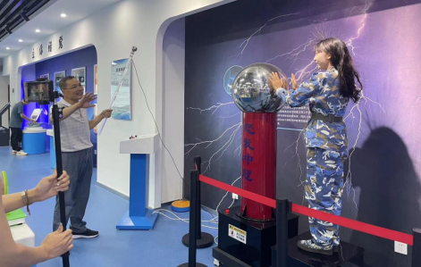 廖新华教授向在场以及直播间的同学们讲解了亥姆霍兹线圈与建筑抗震等实验原理方法。陈仕国副教授讲解了霍格沃兹魔法墙的原理,并带领着现场的老师、同学感受怒发冲冠,引得直播间欢声四起。李赟博士演示了水波的形成实验,用可视的方式形象地描绘出波的形状,引出波的干涉、叠加原理。其他老师也纷纷展示了鱼洗、手触电池、太阳能发电等有趣的实验。