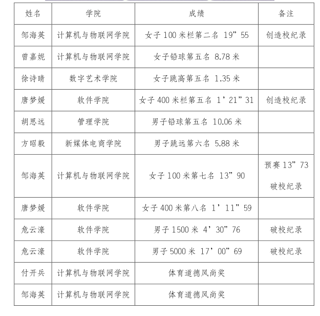 本次比赛充分展现了我校学子团结奋进、攻坚克难的精神面貌,更是我校体育课程教育教学改革成果的充分体现。下一步,我校田径队将总结经验、弥补不足,为明年的比赛做好准备,争取更好成绩。