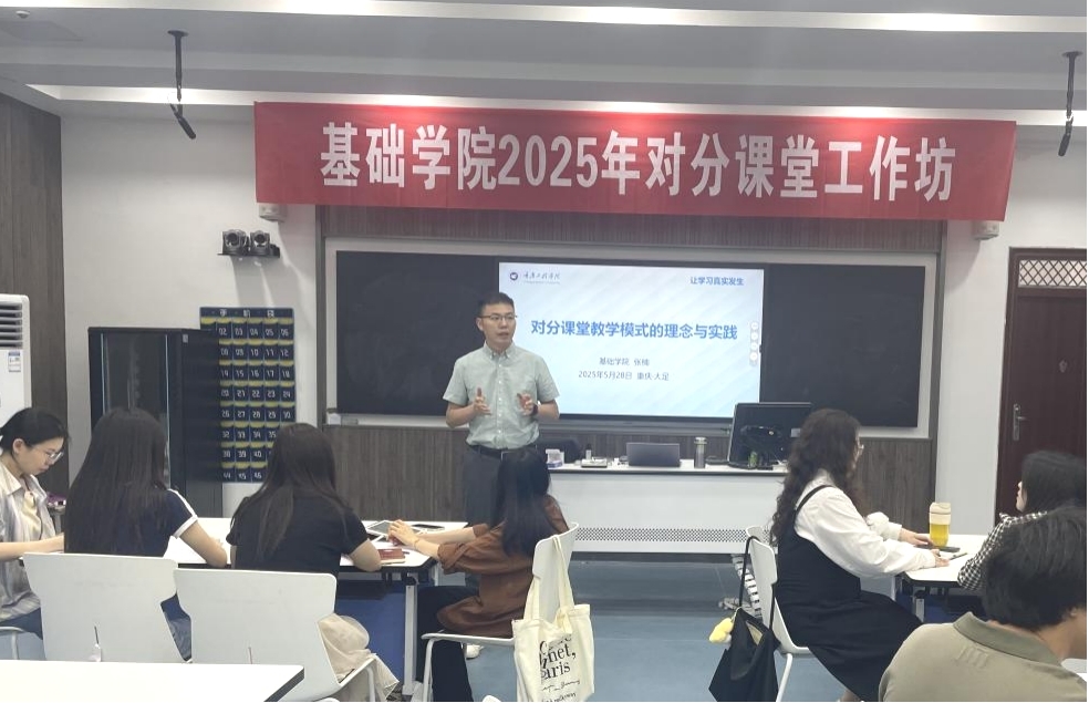 2025年5月28日下午,基础学院2025年对分课堂工作坊培训活动在双桥校区S1201开展。本次培训聚焦“对分课堂教学模式的理念与实践”这一主题,旨在提升教师教学能力、推动教学模式创新,由对分课堂认证导师、基础学院副院长张楠担任主讲人,32名教师参加工作坊。