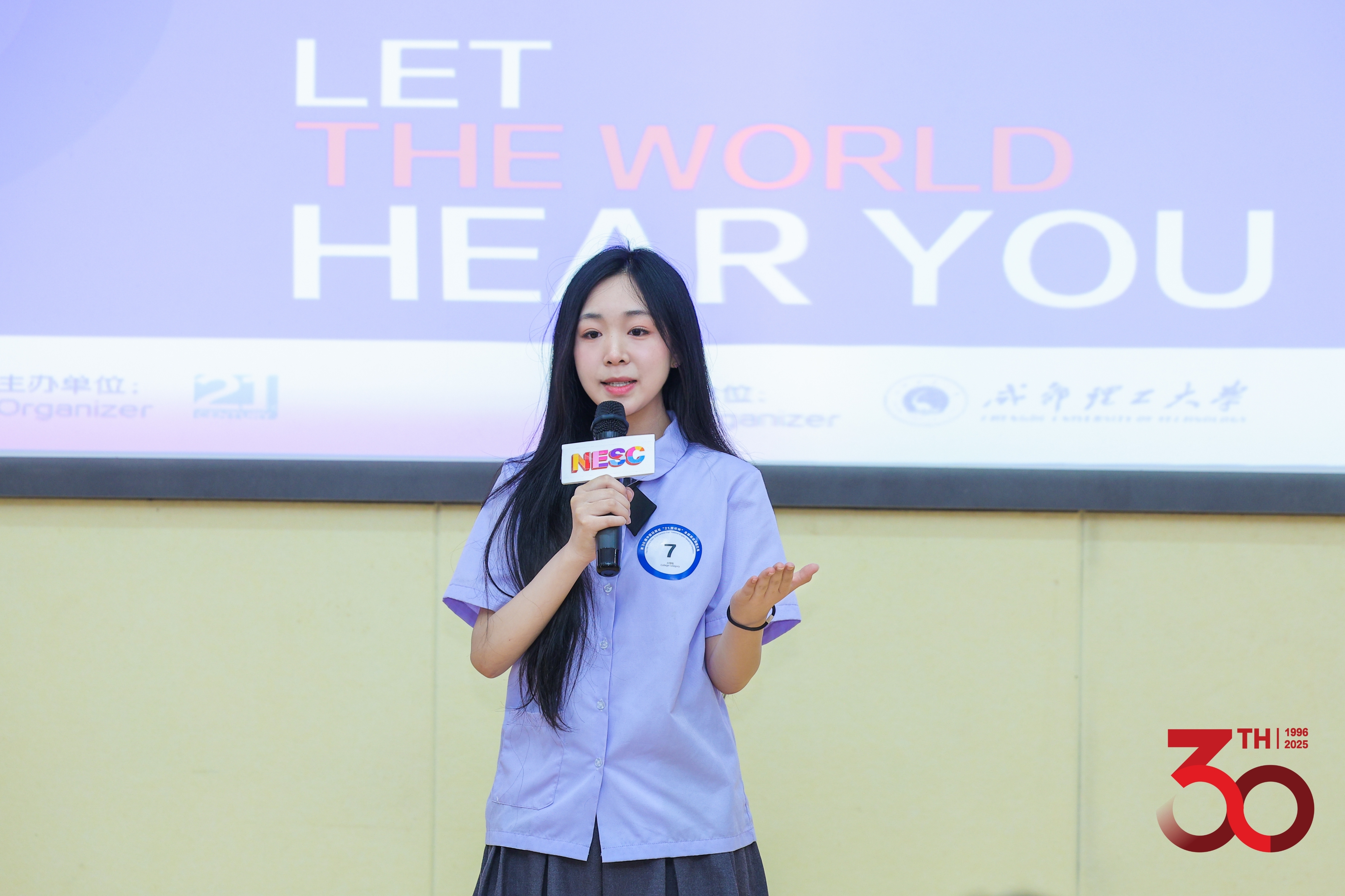 6月28日,第30届中国日报社“21世纪杯”全国英语演讲比赛“川渝”地区决赛在成都理工大学圆满落幕。本次地区赛吸引了来自重庆大学、四川大学、电子科技大学等20余所高校的41名优秀学子同台竞技。经过激烈角逐,我校郑子熙(24级数据科学与大数据技术专业)和杨馥榕(24级网络与新媒体专业)同学在基础学院蹇佳、谭涛指导下,脱颖而出,双双荣获三等奖。